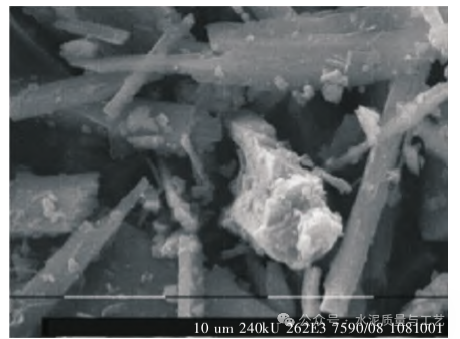 During hydration, continuous, flocculent deposits form on the surface of wollastonite particles, which help enhance flexural strength. Additionally, the elongated morphology of wollastonite particles can form an interwoven network structure within the cement paste, acting as a micro-fiber reinforcement and further improving flexural performance. Therefore, the combination of hydration reaction and micro-fiber reinforcement provided by wollastonite particles significantly increases the flexural strength of mortar specimens.